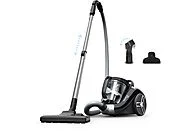El diseño compacto, el tubo telescópico metálico y el radio de acción de 8,8 metros facilitan una limpieza cómoda y sin interrupciones. Incluye accesorios integrados ideales para distintas superficies, y su funcionamiento silencioso de 75 dB(A) mejora la experiencia de uso.