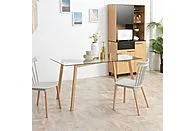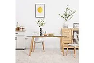 El diseño se complementa con unas patas de acero con acabado efecto madera, que aportan un equilibrio perfecto entre robustez y estética natural. Gracias a sus medidas de 150 × 75 cm, se convierte en una opción cómoda y espaciosa para hasta 6 personas, siendo perfecta para comidas familiares, reuniones o como mesa principal en el salón.