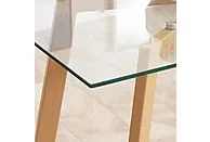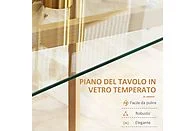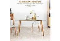 La HOMCOM 835-837V01TP es una mesa de comedor moderna y funcional diseñada para aportar estilo y durabilidad a cualquier hogar. Su tablero de vidrio templado transparente ofrece una superficie amplia, resistente a impactos y muy fácil de limpiar, ideal para el uso diario.